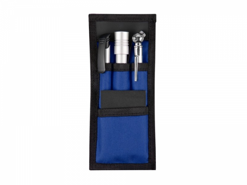 Набір для Автомобіліста: кухоль з термоізоляцією на 450 мл, пристрій для вимірювання тиску в шинах, ліхтарик, ручка, блокнот.