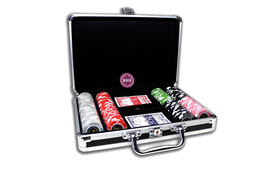 У комплект набору входять гральні карти, кнопка дилера та покерні фішки (200 шт.):