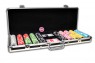 У комплект набору входять гральні карти, кнопка дилера та покерні фішки (500 шт.):