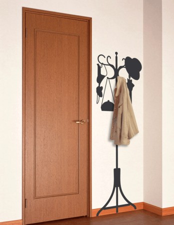 Забавная идея с вешалкой легко впишеться в дизайн вашей прихожей, и с помощью крючка будет удобно повесить верхнюю одежду. Интерьерные наклейки наклеиваются на любые ровные поверхности: стены (как окрашенные, так и с обоями), корпусную мебель, бытовую технику, стекла, зеркала, автомобили.