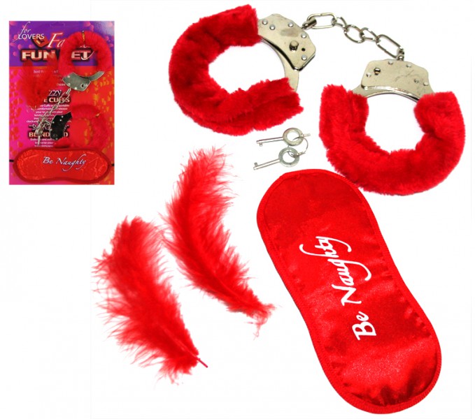 Кайданки набір коханим, зрадить вашому інтимному життю різноманітні та неймовірні розваги. Набір включає кайдани з оксамитом, пов'язку на очі і пухнасті пір'їнки для ласки.