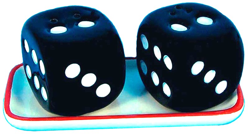 Сільнички у вигляді двох гральних кубиків на підставці. Матеріал – кераміка. Розміри товару, див: 5х12х6.