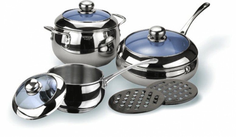 Набор из качественной нержавеющей стали,имеет многослойное термоаккумулирующее дно,что сохраняет температуру приготовленной пищи. Набор состоит из обладает матовой и зеркальной полировкой, литые ручки из нержавеющей стали 18/10,что позволяет мыть приборы в посудомоечной машине. Отличный подарок домохозяйке!