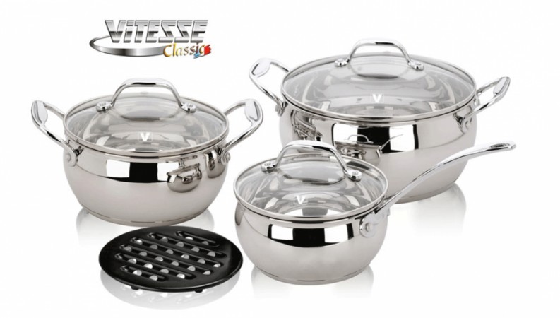 Набор посуды от известной французской марки Vitesse, прекрасно подойдет для использования как на газовых и электрических,так и на индукционных и керамических плитах. Так же данный набор пригоден к использованию в посудомоечных машинах.
