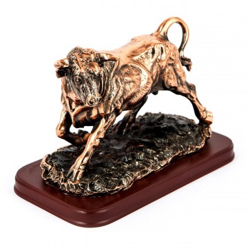 Пропонуємо звернути вашу увагу на оригінальну мідну статуетку із зображенням бика. Якість виконання представленої статуї на найвищому рівні, такого роду подарунок буде гарною інтер'єрною прикрасою як на робочому місці так і вдома.