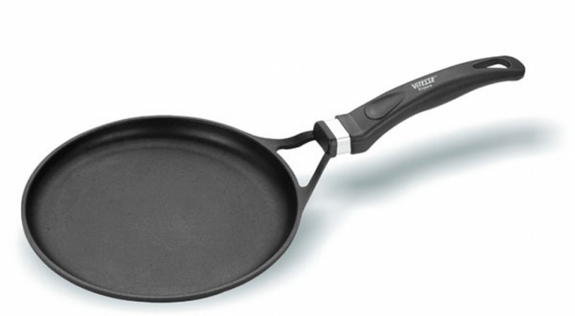 Сковорода для блинов от французской марки Vitesse порадует Вас своим качеством сборки,а самое главное качеством приготовления! Прочный алюминиевый корпус,антипригарное покрытие-все это сделает процесс приготовления Ваших любимых блинчиком легким и невзыскательным.