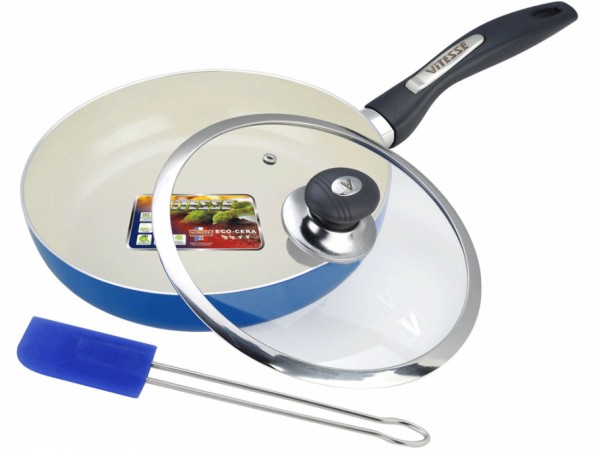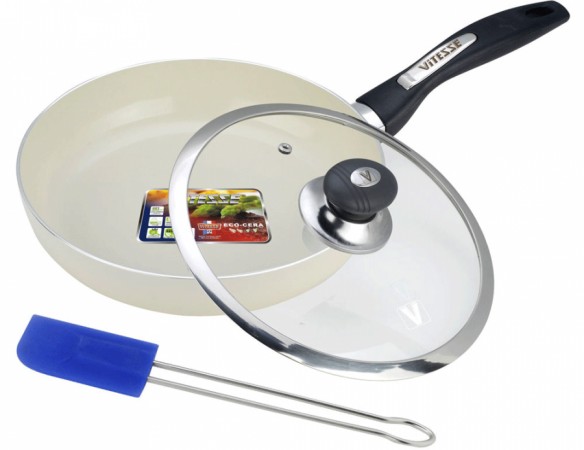 Простая в уходе сковорода,от французской марки Vitesse. Корпус сковороды изготовлен из алюминия, имеет стойкое в царапинам покрытие, позволяющее готовить при температуре до 450 градусов Цельсия. Пригодна к использованию на газовых,электрических и керамических плитах,а так же для мойки в посудомоечной машине.