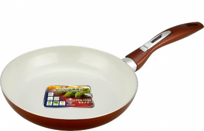 Простая в уходе и качественная сковорода от французской марки Vitesse. Бакелитовые ручки,которые не нагреваются,стойкое к царапинам покрытие сковороды,сделают процесс приготовления пищи приятным и не обремененным. Пригодна к использованию на газовых,керамических,индукционных и электрических плитах,а так же для мойки в посудомоечной машине.