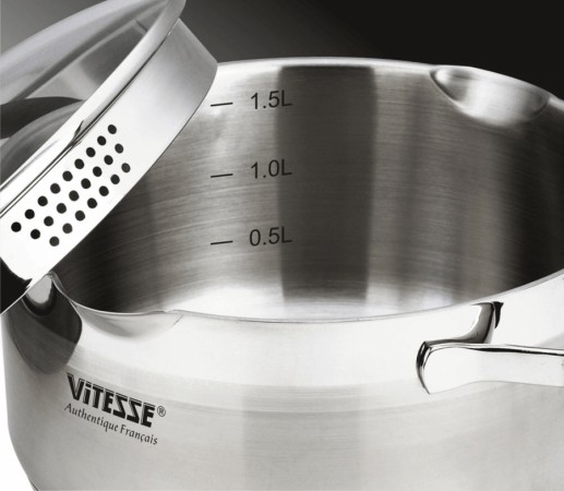 Данная модель изготовлена из нержавеющей стали,имеет внутреннюю градуировку,благодаря чему,Вы сможете точно знать сколько налили воды для приготовления пищи,а многослойное термоаккумулирующее дно имеет алюминиевую прослойку,благодаря чему тепло равномерно распределяется по всей поверхности кастрюли,и сохраняется дольше,оставляя свежеприготовленную пищу теплой.