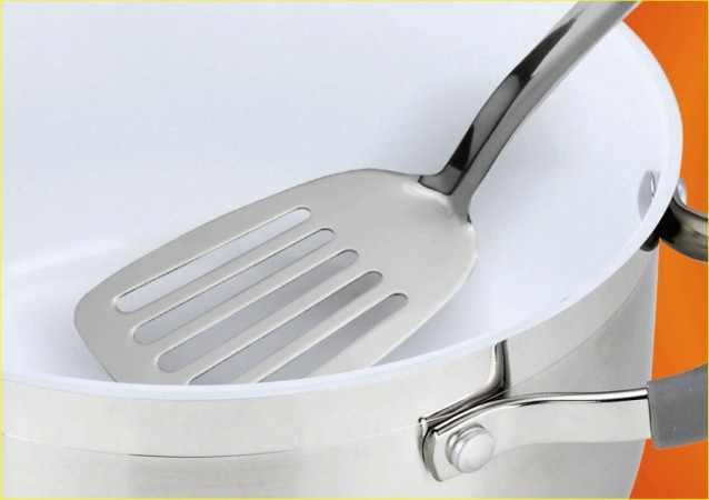 Кастрюля изготовлена из нержавеющей стали, имеет внутреннее керамическое покрытие,устойчивое к царапинам и перепадам температуры. Ручки имеют силиконовое покрытие,которое не нагревается и удобно ложатся в руку. Пригодна к мойке в посудомоечной машине.