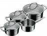 Не знаете что подарить на новоселье? Тогда данный набор именно для Вас! Качественная посуда порадует ее владельцев качеством изготовления и современным дизайном. Тройное капсулированное дно равномерно распределяет температуру, экономя энергию и силы,а крышка из специального термостойкого стекла позволит наблюдать за процессом приготовления пищи в любой момент.