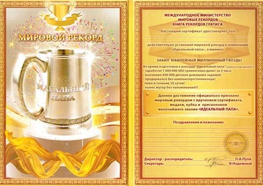 Відгуки до Диплом - гигант мировой рекорд Идеальный папа