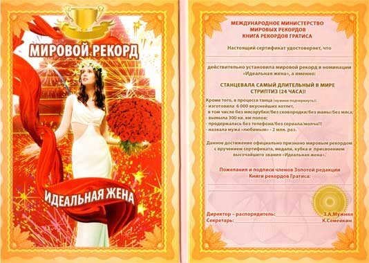 Диплом - гігант світовий рекорд " Идеальная жена "