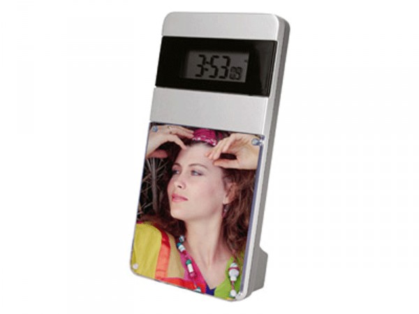 Годинник із рамкою для фотографії 6х7,5 см. На місце фотографії легко вставляється будь-яка картинка чи логотип. Практична річ для офісного працівника.