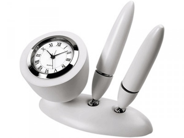 Годинники та ручки можна міняти місцями шляхом відкручування. У комплекті йде батарейка до годинника. Стане чудовим доповненням Вашого робочого столу.