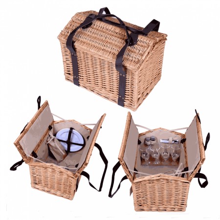 Пропонуємо до вашої уваги чудовий і практичний подарунок, кошик сплетений з лози, столові прилади виконані з нержавіючої сталі. Представлений пікніковий набір розрахований на чотири особи. Кошик для пікніка буде чудовим подарунком незалежно від пори року.
