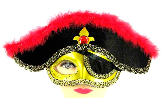 Яркая маскарадная шляпа - маска "пират на балу" - это одновременно 2 аксессуара в одном и шляпа и маска, что очень удобно так как в таком одеянии Ваш образ будет полностью сформированным. Арт: ST56 Пр.