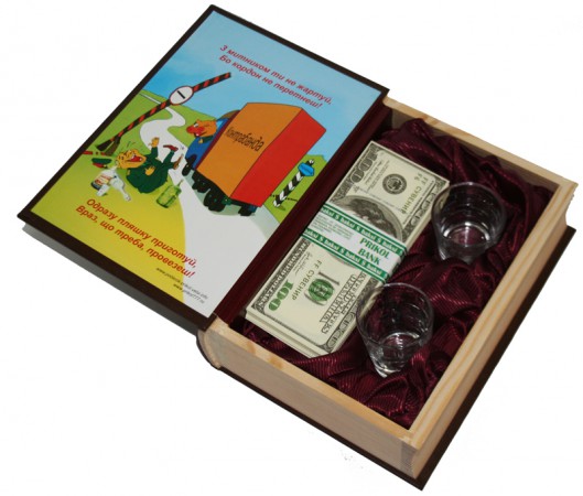 Порадуйте свого товариша-митника, вельми своєрідним "коментарем", про його діяльність. Веселий подарунок, порадує своїм вмістом та якістю виготовлення. Книга є річ, у якій можна приховати необхідні предмети,від загального погляду,оскільки вони нічим відрізняється від цієї книги,на перший погляд.