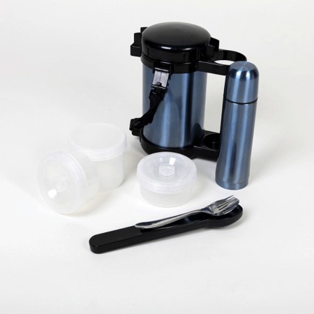 Чудовий подарунок для любителів пікніка на свіжому повітрі або просто кемпінгу. У цьому компактному наборі ви зможете зберегти гарячою не тільки каву або чай, а й повний обід, а також все, що додається. При цьому вам не потрібно буде думати – з чого і чим потім з'їсти обід.