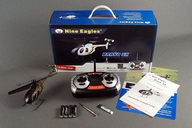 Представленная модель вертолета Nine Eagle Bravo SX это точная копия настоящего вертолета только в миниатюре. Модель хорошо управляется и предназначена для полета даже в темное время суток благодаря встроенной подсветке кабины. Пульт многофункционален за счет встроенного LCD дисплея. Вертолет заряжается от пульта.