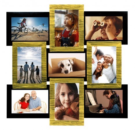 Оригінальний фотоколаж "Золоте мерехтіння" на 9 фоторамок - яскравий подарунок на день народження. Кожна фоторамка для фотографій розміром 10 х 15 см. Розмір: 48х48см. Фотоколаж виготовлено з дерева, і розмальовано вручну.