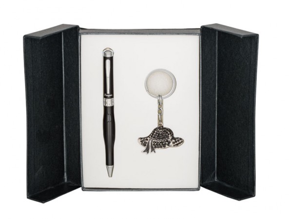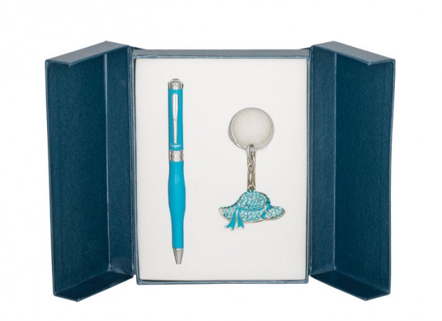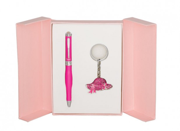 Подарочный набор пишущих принадлежностей, который включает в себя шариковую ручку и брелок. Набор имеет глянцевое покрытие, а так же инкрустирован искусственными кристаллами. Все это делают этот подарок тем презентом, на который заслуживает каждая женщина. Набор изготовляется в разных цветах.