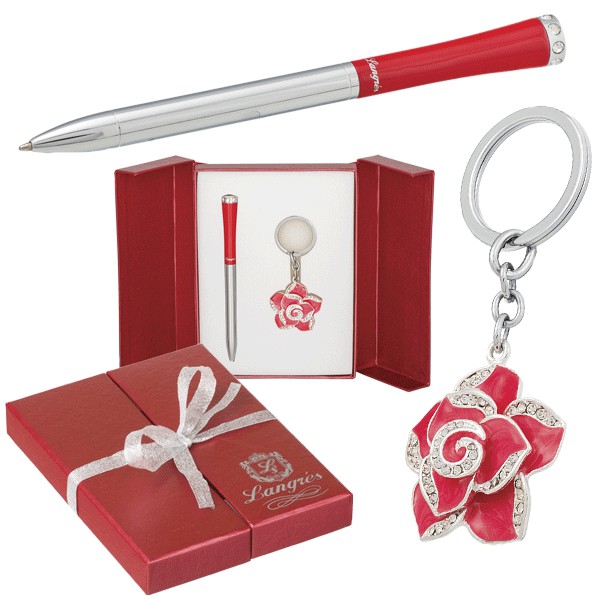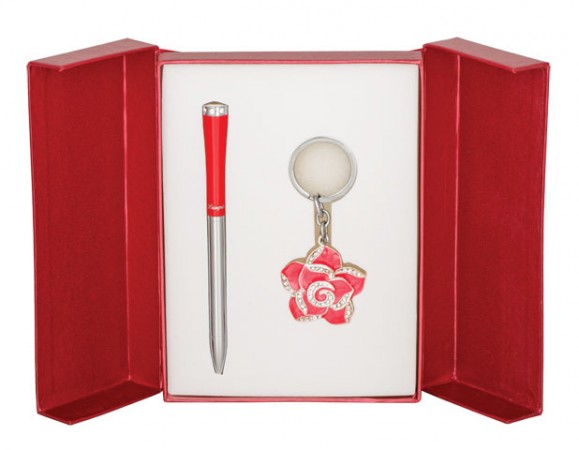 Подарочный набор который не оставит равнодушной ни одну особь женского пола. Состоит набор из шариковой ручки и брелка в виде распустившейся розочки, который можно пристегнуть как к ключам так и к сумочке,который будет придавать изысканности и элегантности. Глянцевый корпус ручки, хромированный детали, инкрустация искусственными кристаллами - все это признак качества и надежности.