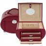 Скринька виготовлена в химерній напів-овальній формі, має висувні ящики та дзеркало, що робить цю модель практичним та корисним подарунком для всіх любительок прикрас та біжутерії.