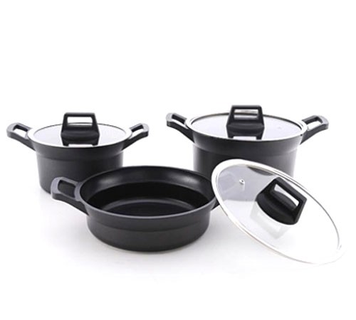 Набор посуды из 7-ми предметов, изготовлен из литого алюминия, и имеет керамическое покрытие, благодаря чему готовить с такими приборами составит одно удовольствие.