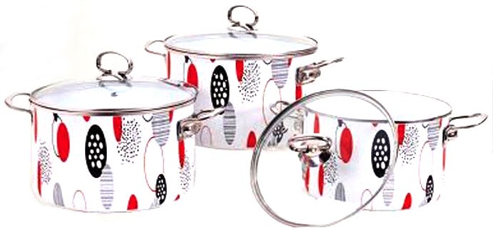 Набор эмалированной посуды из 6 предметов, включает в себя все необходимые предметы, для приготовления вкусной и здоровой пищи.