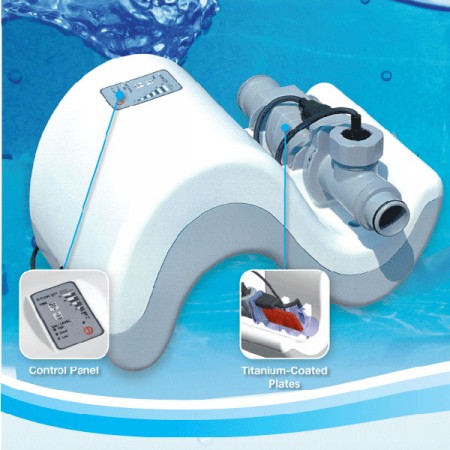 • Превращает обычную соль в хлор для обеззараживания воды бассейна