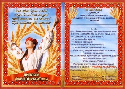 Диплом для настоящей украиночки- отличный приз на разнообразных конкурсах и мероприятиях где нужно отмечать те или иные достоинства конкурсантов. Арт: DPU07 Пр.
