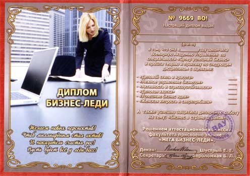 Диплом прикол " Бизнес-леди "