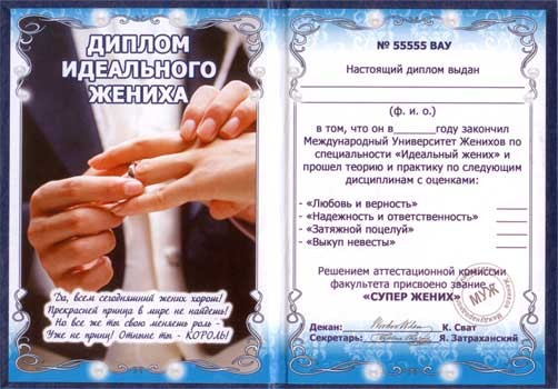 Характеристики товару Диплом - прикол " Идеального жениха "