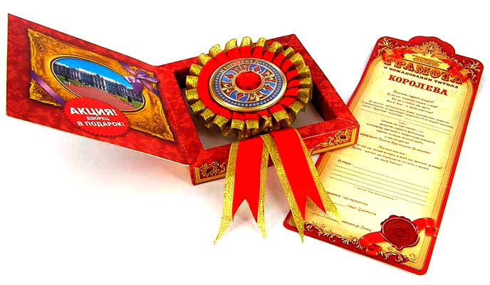 Оригинальный подарок, еще и универсальный, приурочить можно к многим праздникам. Подарок состоит из большого ордена с парчовыми лентами и огромным "бриллиантом", именной титульной грамоты и "позолоченной" подарочной коробки с "дворцом - в подарок". Размер коробки 16*16*3 см. Арт: TI-02 Пр.