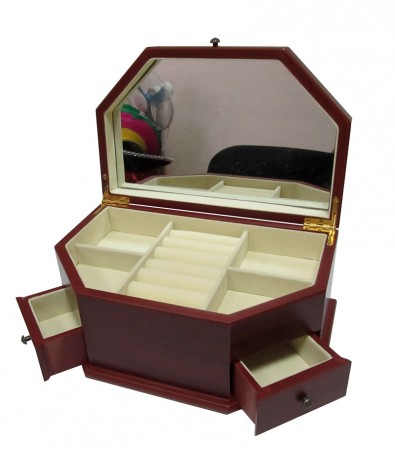 Скринька має три відділення, також оснащена об'ємним дзеркалом, для зручнішої примірки прикрас. Гарний подарунок для хорошої людини.