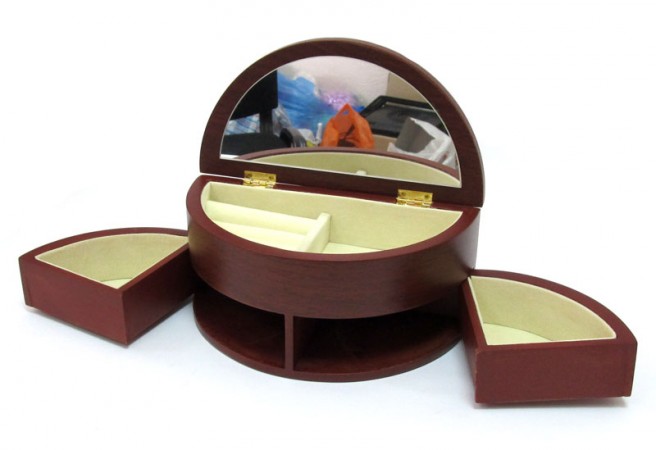 Скринька для прикрас на три відділення має так само вбудоване дзеркало, завдяки чому приміряння нових "брюликів" приноситиме лише приємні емоції.
