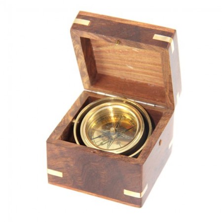 Современный и стильный компас в деревянной коробке, станет хорошим презентом для людей, увлекающихся морской тематикой.