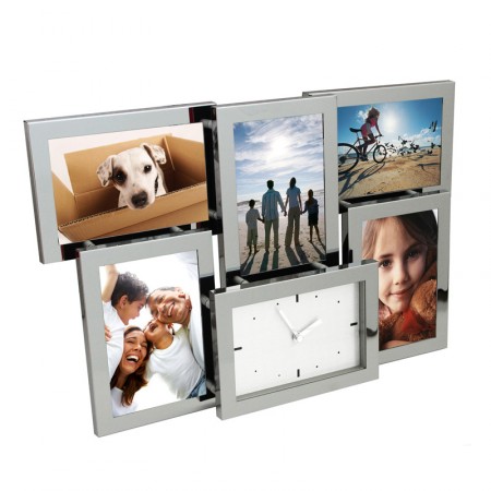 Універсальний фотоколаж на 5 фотографій, має вбудований годинник, завдяки чому така модель не тільки збереже спогади у вигляді фотографій, але й стане гарним доповненням до інтер'єру будь-якої кімнати.