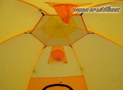Швидко збірний (Quick Erect System®) каркас виконаний з легкого та міцного фібергласу. Замки на дугах та верхня цанга виготовлені із протиударного полістиролу. Матеріал відрізняється широким діапазоном експлуатаційних температур – від мінус 40 градусів до плюс 80. До внутрішньої поверхні бічних стінок наметового тенту пришиті 5 кишень, у верхній частині – монтажні петлі до яких можна пристебнути поличку для різних дрібниць. Там є 2 вентиляційних отвори, виконаних у вигляді муфт і прикритих козирками, що запобігають потраплянню опадів всередину. За потреби можна змінити розмір отворів за допомогою регулювального шнурка.