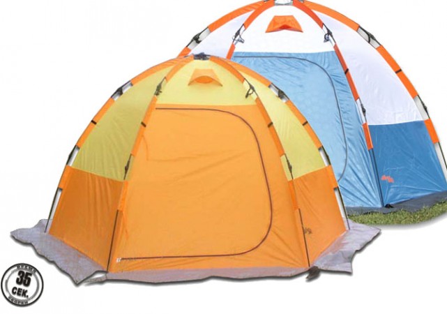 Намет пристосований для риболовлі з льоду і розрахований на одного-двох рибалок. Конфігурація статі є шестигранником. Така конструкція намету найбільш стійка до вітру, при сильних поривах вітру дуги не «скручуються» і стінки тенту практично не «вдуються» всередину. Намет виготовлений із сучасних матеріалів, так само в комплекті йдуть 6 додаткових вітрових відтяжок. По низу намету пришита широка (20см) спідниця. За рахунок жовто/оранжевого кольору матеріалів, навіть у похмурий день у наметі світло і не потрібне використання додаткового освітлення.