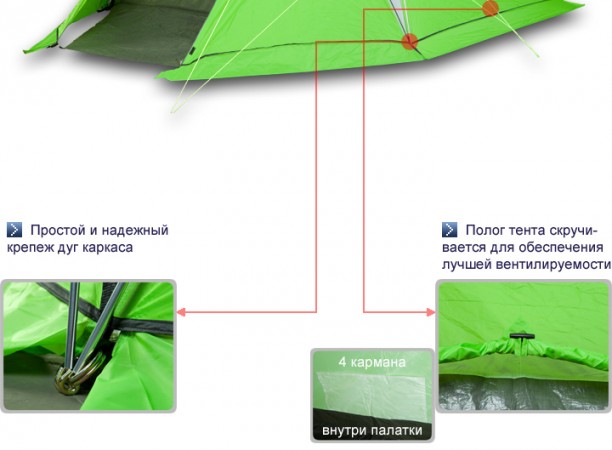 - відкриття/закриття вентиляційних отворів зсередини намету -