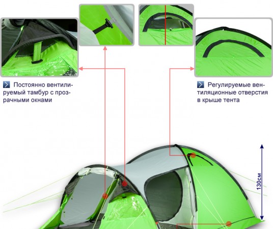 Тримісний туристичний намет підвищеної комфортності, має алюмінієві дуги завдяки чому стійкість збільшується на рази. Так само дана модель має збільшений і місткий тамбур і гнучко регульовану вентиляцію. Придатна для тривалої подорожі та походів вихідного дня. Внутрішній намет ще на стадії виробництва кріпиться до тенту, що спрощує і прискорює його встановлення, а також уберігає від змочування дощем. Чудовий подарунок любителям туризму чи відпочинку природі.