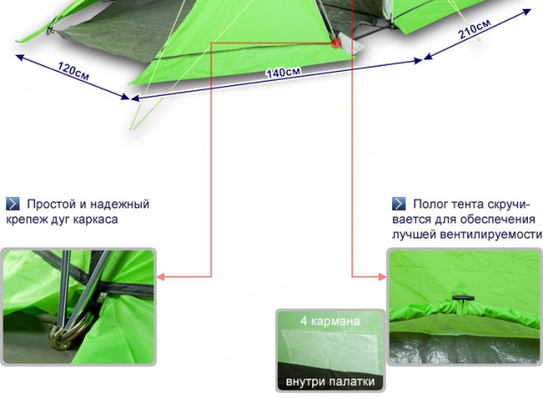 - відкриття/закриття вентиляційних отворів зсередини намету