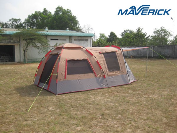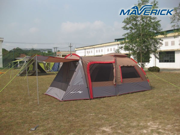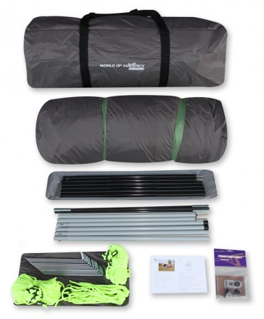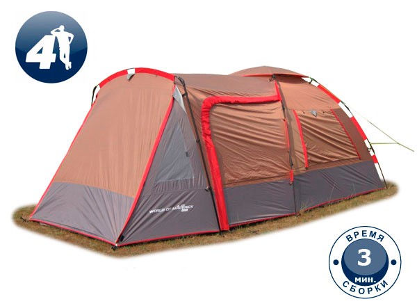 Основою каркаса є швидкозбірний каркас RAPIDEX® QUICK ERECT SYSTEM, що гідно оцінити людей, які розуміються на міцності та надійності. Виносна дуга тамбура комбінована - сталеві сталеві, а поперечна дуга з фібергласу, що підвищує рівень вітростійкості намету. За рахунок того, що намет має три входи, вентиляційні отвори в даху та два великі вікна по сторонах спального приміщення, забезпечується ідеальна вентиляція, навіть у найспекотнішу погоду. Всі входи та вікна забезпечені протимоскітною сіткою та дублюються вітрозахисними стінками. Намет має спідницю по всьому периметру та великий розвинений тамбур дозволяє поставити всередині столик та кілька стільців. У наметі можуть комфортно розміститися 4 особи. Гарний подарунок для любителів кемпінгу.