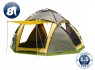 Просторий шатер-тент дозволить зробити Ваше перебування на природі більш комфортним та безпечним. Його розміри дозволяють цілком затишно розміститися всередині групи з 6 осіб, причому його можна використовувати як на короткочасних, так і на тривалих походах. Конфігурація підлоги намету є восьмикутником. Намет має чотири великі входи-двері. Кожна з них закривається протимоскітною сіткою і зверху сітки дублюється дощно-захисною стінкою, а самі сітки та стінки фіксуються з боків застібками-блискавками. Основне вдосконалення цієї моделі визначається доданим у даху тентом, для покращення вентиляції, 4 вентиляційних отвори, закритих для запобігання потраплянню опадів усередину захисним фартухом.