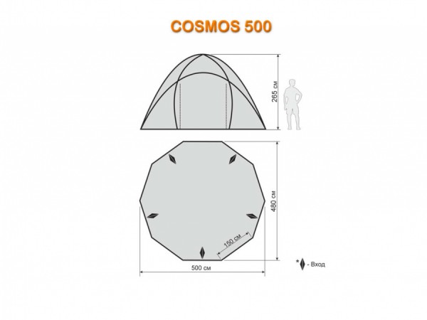 Тент: 500 (Д) X 480 (Ш) X 265 (В) CM