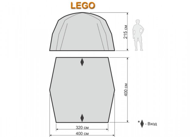 Тент: 400 (Д) X 400 (Ш) X 215 (В) CM