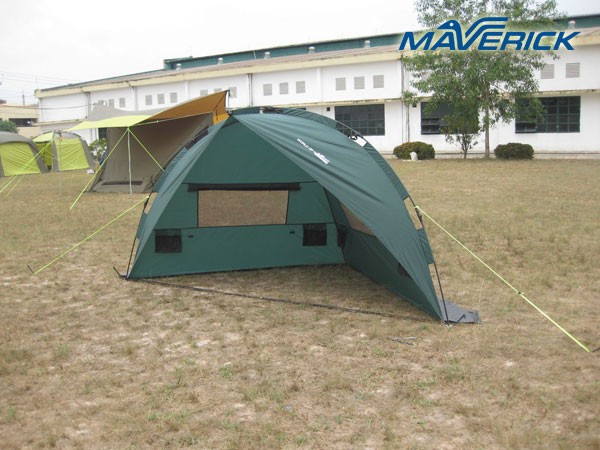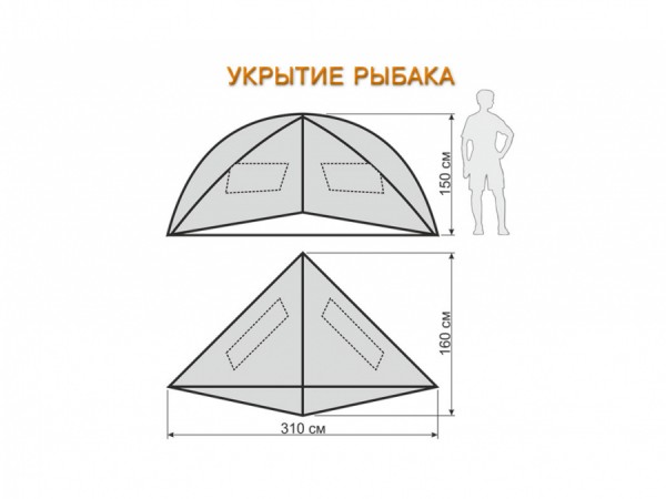 Не погано продуманий та швидко встановлюваний тент-укриття для 1-2 рибалок, що ловлять рибу з берега, виготовлений із міцних сучасних матеріалів, посилений розтяжками та широкою спідницею. Тент є стійкою конструкцією, здатною витримати сильні шквали вітру, завдяки чому, будь то злива або пориви вітру, ніщо не заважатиме Вам займатися улюбленою рибалкою.