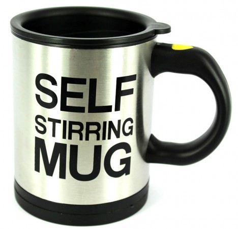 Кружка - термос з автоматичним розмішуванням завадить все, починаючи від цукру та вершків, закінчуючи міні-коктейлями. Працює від двох батарейок "мізинець" (не в комплекті). Матеріал – нержавіюча сталь, пластик.